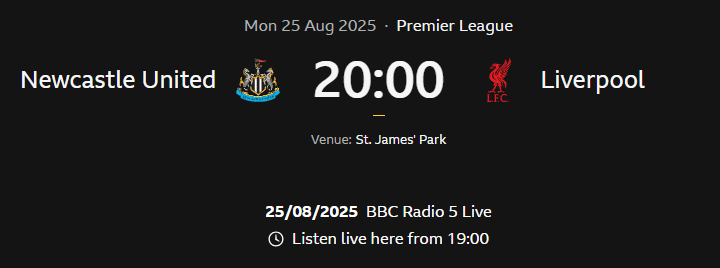 Newcastle United host reigning champions Liverpool at St. James Park Kick off 20:00 BST