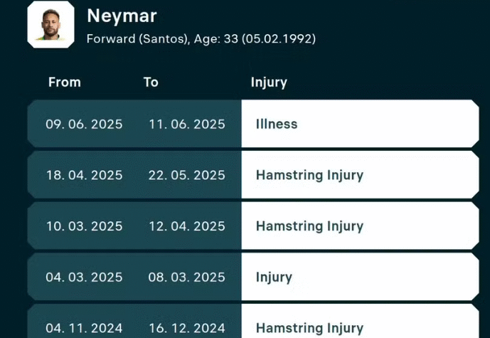 Santos have informed the CBF (Brazil's football federation) that Neymar has suffered a thigh oedema. The No. 10 allegedly felt...